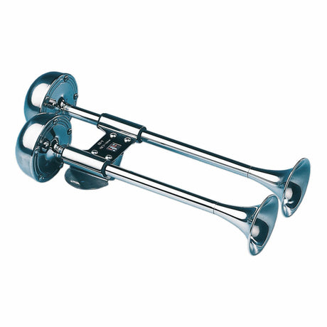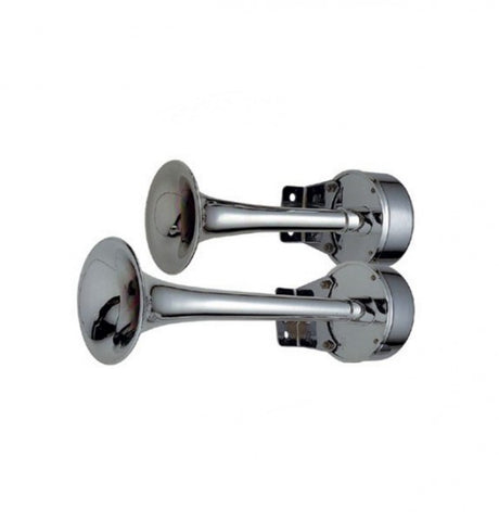 MARINCO Druckluft Doppelklanghorn verchromt, Signalhorn, seewasserbeständig 12V 126dB 525/630Hz