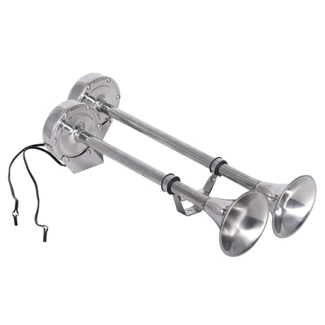Doppelhorn Edelstahl 12 Volt, Signalhorn, 270 mm Länge hochglanzpoliert