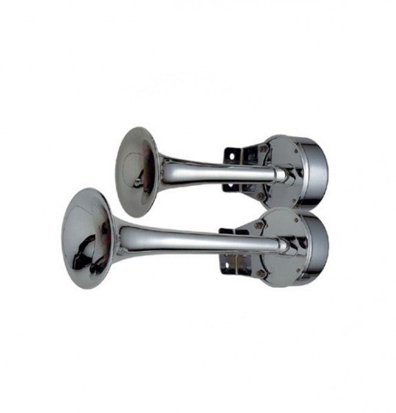Doppelhorn Edelstahl 12 Volt, Signalhorn, 270 mm Länge hochglanzpoliert