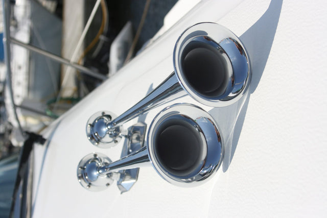 Bei diesem Zweiklang-Kompressorhorn aus dem Hause MARINCO handelt es sich um ein Doppelhorn mit einer Lautstärke von 120 Dezibel bei einer Höhe von einem Meter.