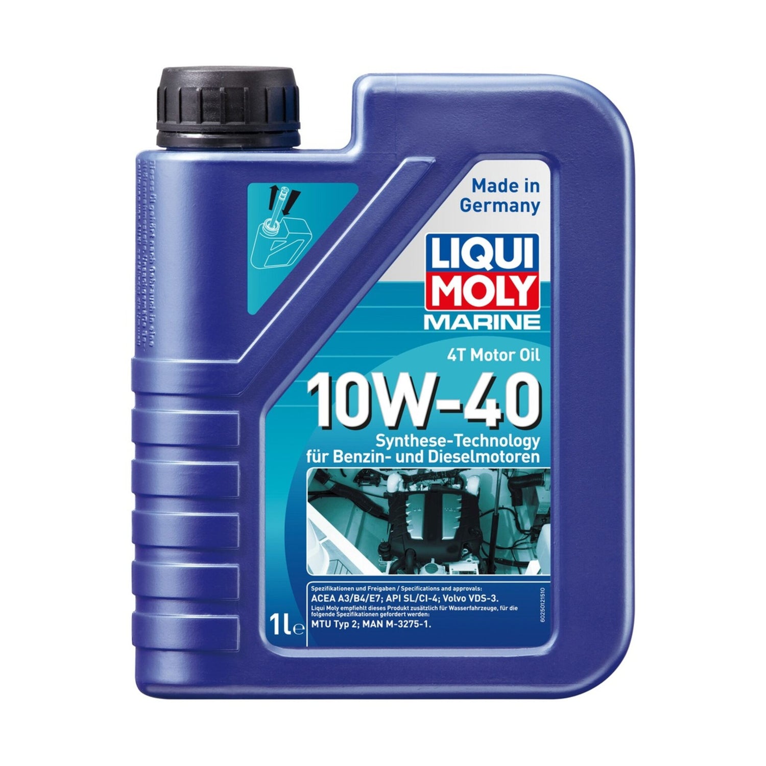 Das Liqui Moly Marine Motor Oil 4T 10W-40 ist ein modernes Hochleistungs-Leichtlaufmotorenöl auf Basis neuester Synthese- und Additivtechnologie. Es gewährleistet einen hervorragenden Verschleißschutz und Motorsauberkeit. Durch einen hohen Gehalt an Korrosionsschutzzusätzen werden die Motorenbauteile optimal geschützt. Erfüllt die Anforderungen führender Motorenhersteller. Kat- und Turbo-getestet. Schützt effektiv vor Zersetzung und Korrosion und sorgt für einen sicheren Kaltstart und eine schnelle Ölversorgung. Erhältlich als 1- und 4-Liter-Kanister.