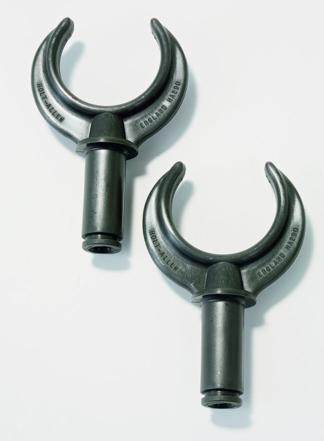 Ruderdolle aus Nylon in schwarz. Innen-Ø: 47 mm, Zapfen-Ø: 18 mm, Gabelweite: 35 mm. VP: 2 Stück