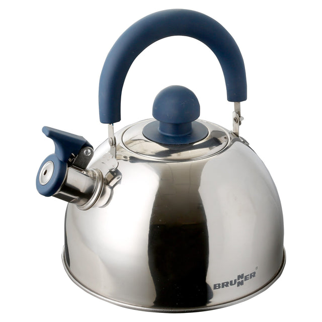 Brunner Edelstahl-Wasserkessel 2,5 Liter, Flötenkessel mit Signalflöte, isolierter Klappgriff