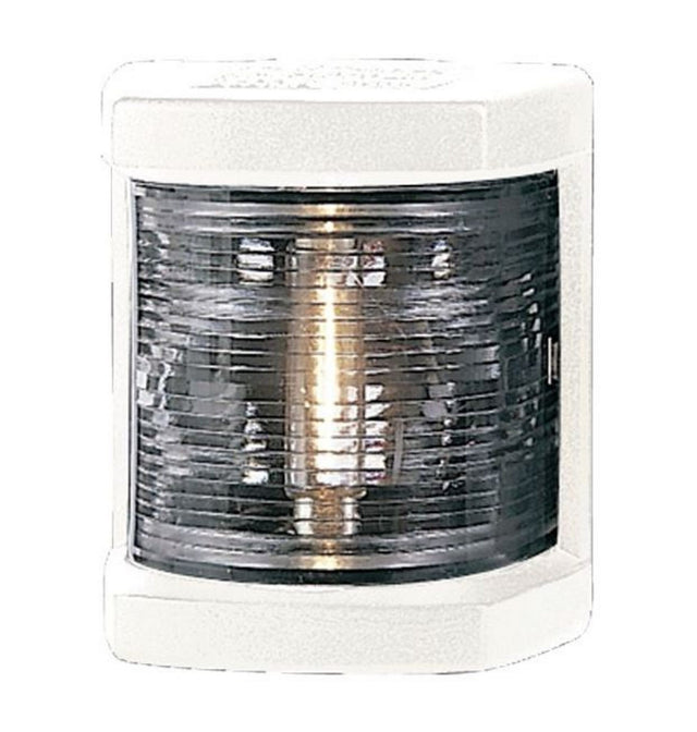 Die Hella Marine Topplaterne der Serie 3652 mit weißem Gehäuse hat eine Tragweite von 2 nm. Das Gehäuse besteht aus Kunststoff und ist schlag- und stoßfest sowie salzwasserbeständig. Ein unkomplizierter Glühlampenwechsel kann ohne Werkzeug durch den Gehäuseschnellverschluss mit Rastbefestigung gewährleistet werden. Diese Positionslampe ist für Wasserfahrzeuge bis 12 Meter Länge, welche ausschließlich auf Binnengewässern unterwegs sind und nicht der Binnenschifffahrtsstraßenordnung unterliegen, zugelassen.