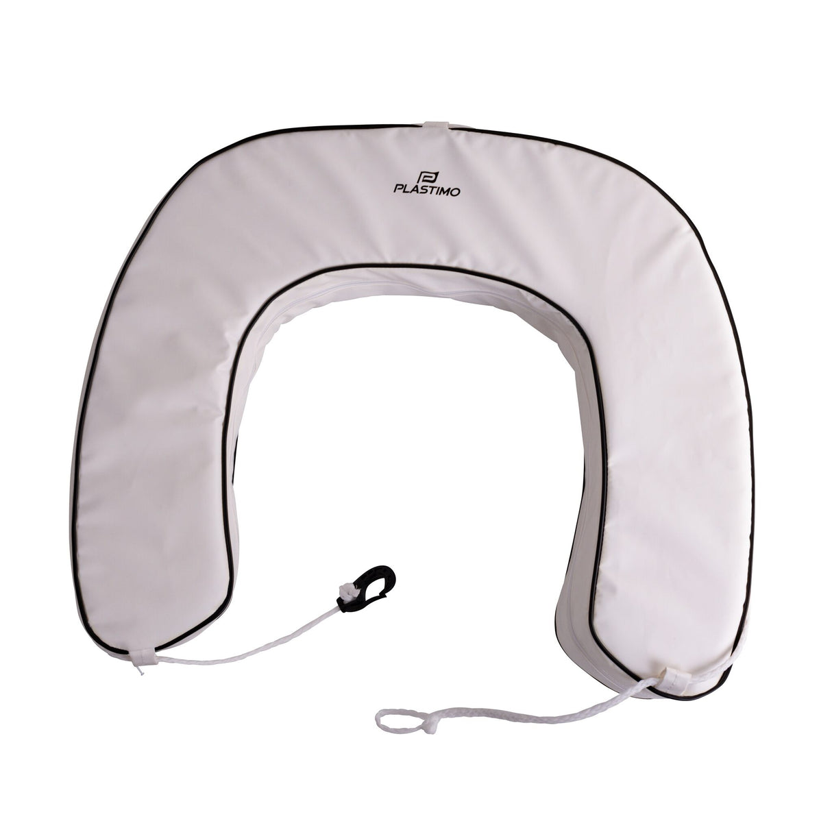 PLASTIMO Hufeisen-Rettungsring mit Griffleinen, Rettungsring, UV-geschützt und mit Karabinerhaken aus Kunststoff - gelb oder weiß