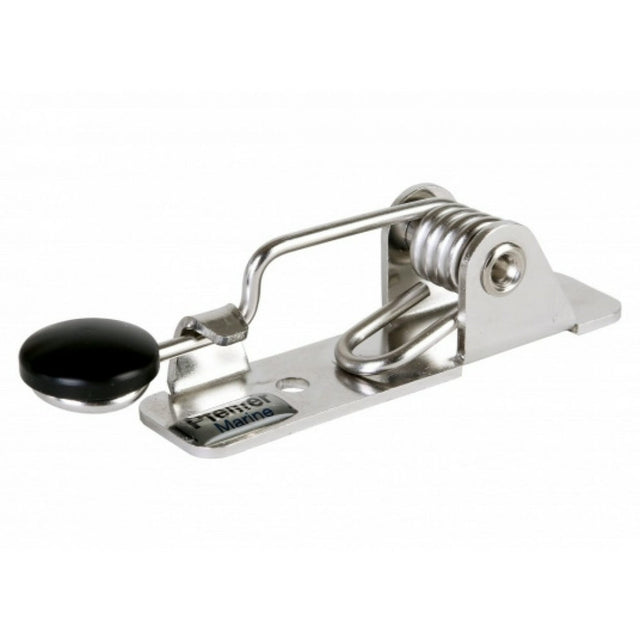 Ruderpinnen-Arretierung aus Edelstahl. Wird auf die Pinne geschraubt und kann an einer über die Plicht gespannten Leine stufenlos arretiert werden.