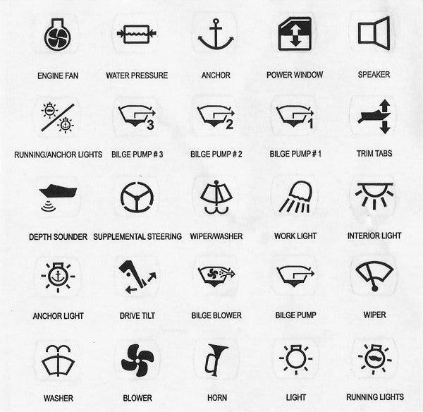 Symbole Satz 25-Stück Selbstklebend, Aufkleber Piktogramme Schaltpaneel, Englischsprachige Bezeichnung