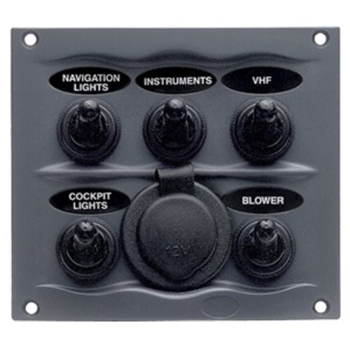 BEP Schalttafel Wasserdicht 5x On/Off, Kompaktpanel Schwarz, Graphitschalter IP56