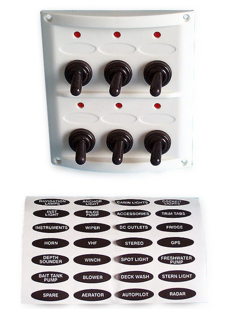 Schaltpaneel 6 Schalter Schwarz wasserdicht, Bedienfeld, robuste Sicherungsautomaten