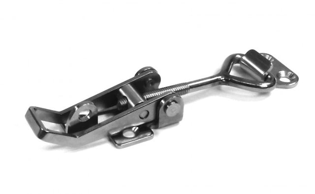 Variabler Hebelverschluss in besonders robuster Ausführung um z.B. Luken und Backskisten an Bord sicher zu verschliessen. Geeignet für Vorhängeschlösser mit einem Bügeldurchmesser bis max. 5,5 mm. Dieser Hebelverschluss besteht aus Edelstahl AISI 304. Zur Montage werden M5 Senkkopfschrauben benötigt.