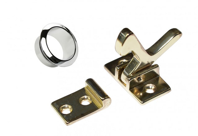 Kastentürverriegelung Messing, Türschloss, Grifflocheinfassung ø 32 mm, Messing verchromt