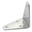Der dreieckige Winkel, aus poliertem Edelstahl, hat eine Breite von 50 mm und eine Länge von 80 mm.