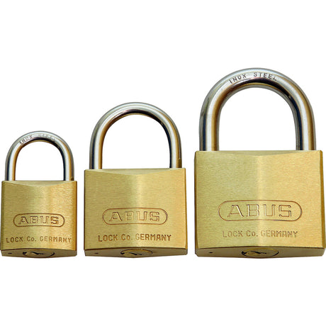 ABUS Vorhangschloss wasserdicht Messingbeschichtung, Sicherheitsschloss wetterfest, Edelstahlbügel
