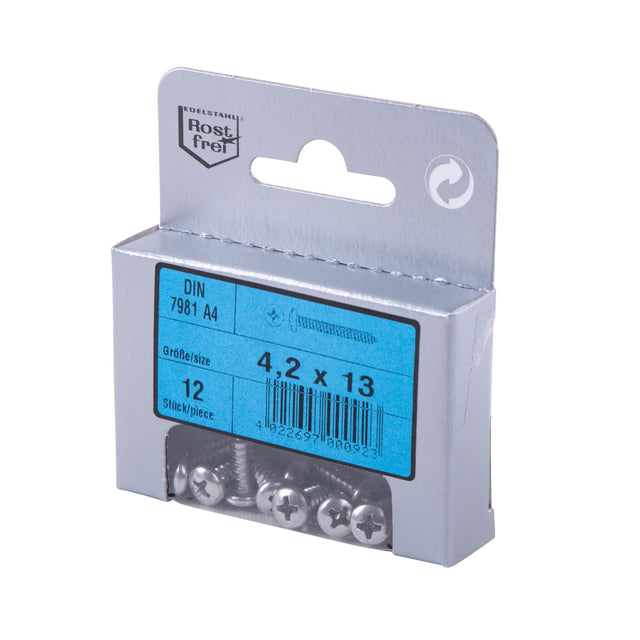 Linsenkopf Blechschraube DIN 7981-A4, Edelstahl A4, korrosionsbeständig und langlebig - 2.9 x 9.5 - 5.5 x 38 mm