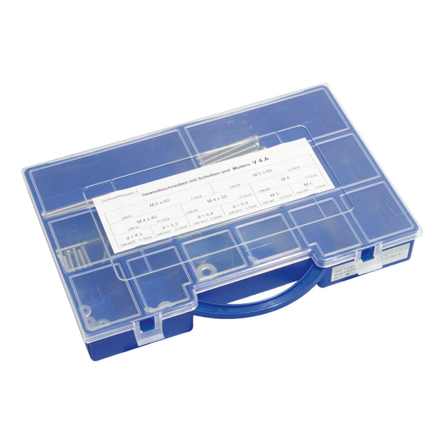 Sortimentskasten Gewindeschrauben Scheiben Muttern V4A Edelstahl Schrauben-Set edelstahlrostfrei stabiler Kunststoffbox