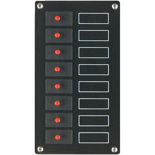 8 thermische Sicherungsautomaten 8 A mit Beschriftungsfeldern.