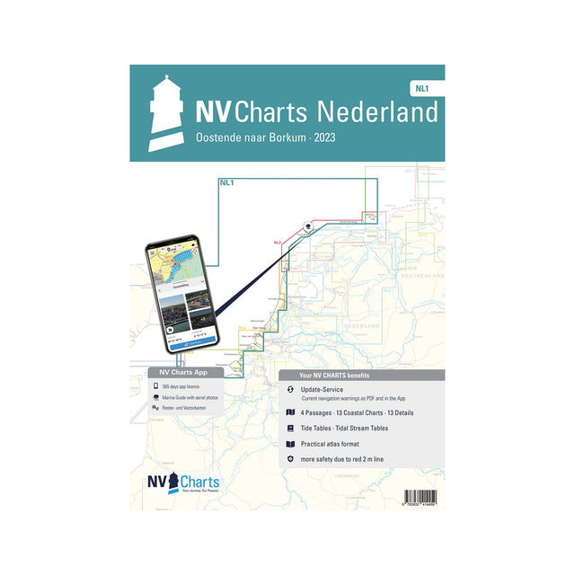 Der detaillierte NV Atlas NL1 Nederland – Oostende naar Borkum beinhaltet alle relevanten Details und Informationen für die nächste Törnplanung. Enthalten sind Übersichtskarten, Revierkarten und Detailkarten für die Nordsee. Dieser Atlas reicht vom ostfriesischem Borkum bis nach Oostende.