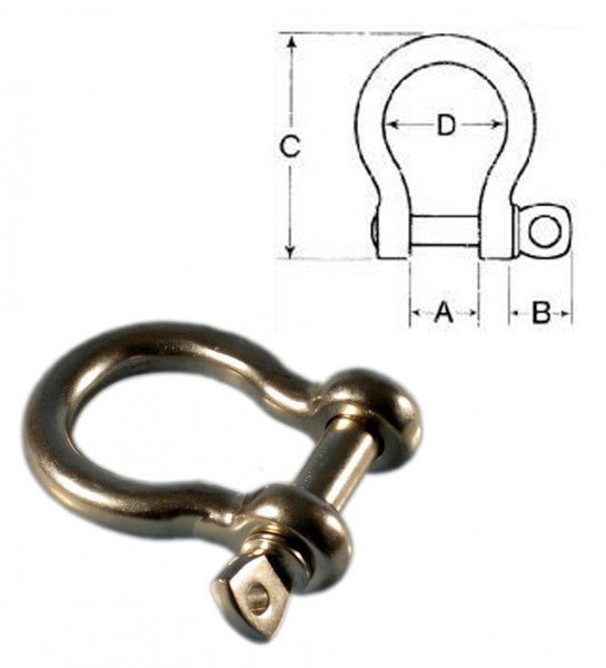 Schäkel Edelstahl 12mm, geschweiftes Kettenglied, hochglanzpoliert säurefest USP