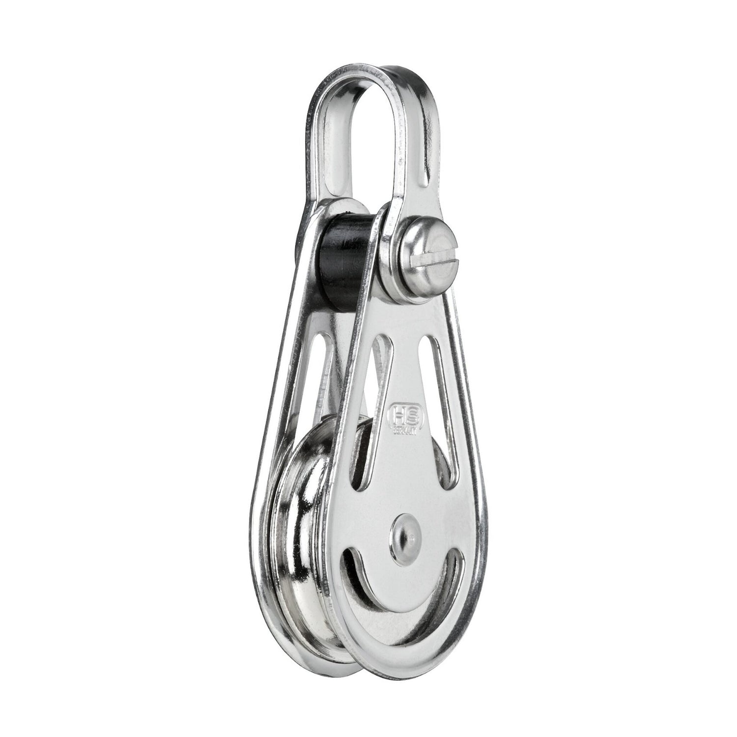 Hochwertiger Gleitlager-Block für 6 mm Draht oder Dyneema, mit Edelstahl-Seitenteilen. Der Bügel ist demontierbar - es muss nur der mit einem Splentring versehene Bolzen entfernt werden. Taumelvernietung verhindert scharfe Grate am Nietkopf. Seitenteile und Gehäuse gefertigt aus hochwertigem rostfreiem Edelstahl. Die Seilrollen sind Messing vernickelt, daher besonders gut geeignet für Draht und Dyneema. Die kompakte Bauweise ermöglicht viele Einsatzmöglichkeiten wie z.B. im Wassersport, der Industrie und im DIY-Bereich.