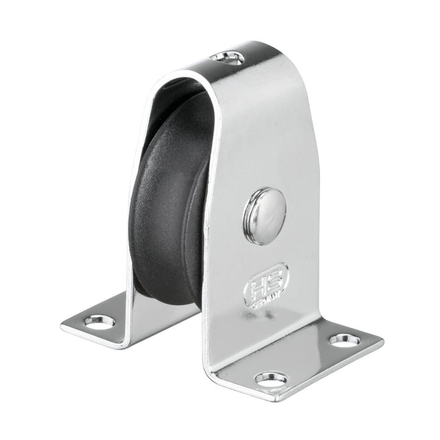 Funktionaler Stehblock mit einem Edelstahl Rostfrei-Gehäuse und vier Bohrlöchern zur Befestigung an Bord. Stark belastbares Gleitlager. Die Seilrolle ist aus UV-beständigem, glasfaserverstärktem Kunststoff. Keine scharfen Grate am Nietkopf dank Taumelvernietung. Made in Germany. In Iserlohn, Nordrhein-Westfalen hergestellt.