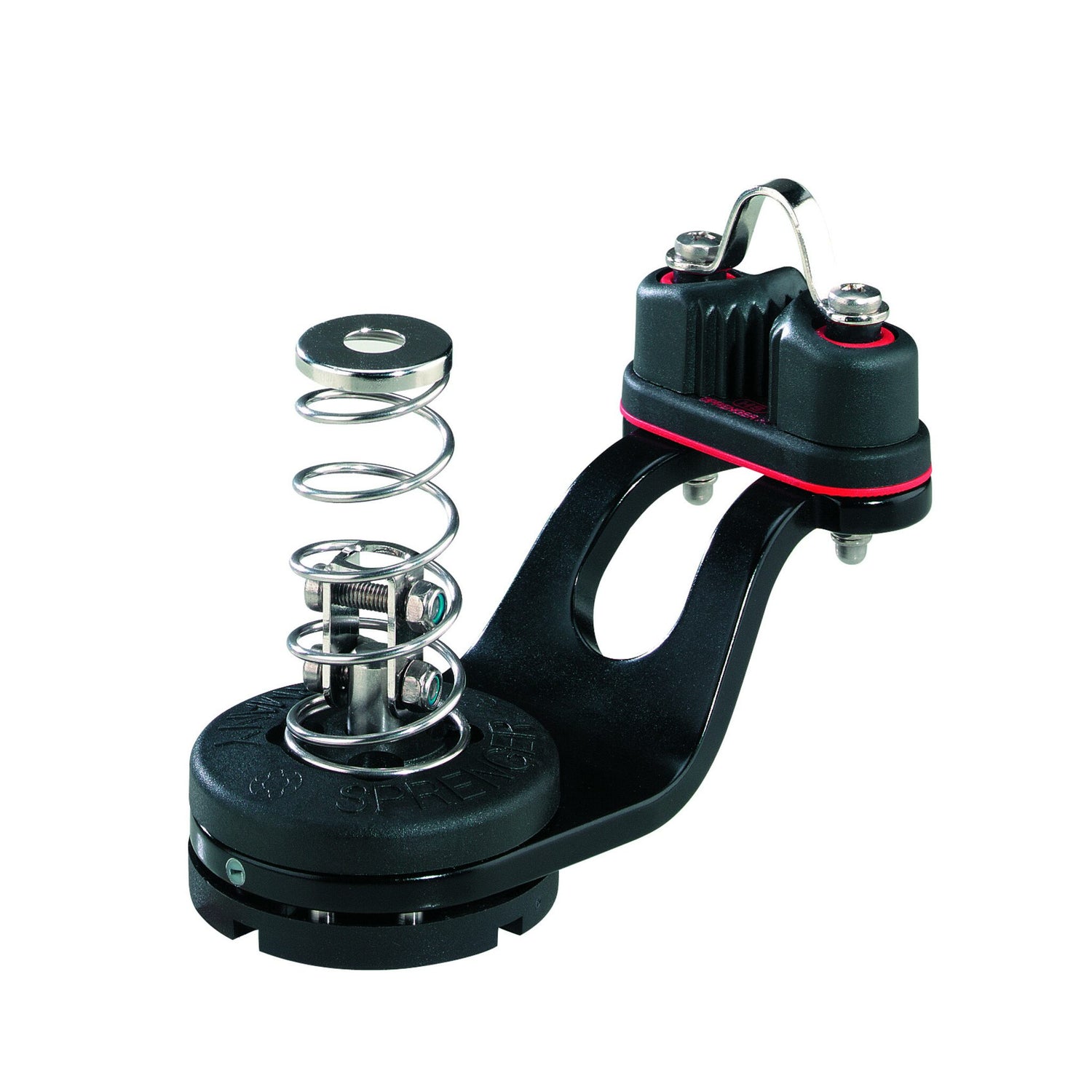 Flexible Kugellager-Basis mit hohem Ausleger für maximal 13 mm Tauwerk, wahlweise um 180°, 210° oder 360° drehbar. Die Federfixierung verhindert ein Übergreifen der Feder auf den Block. Integration von vier Wasserabläufen in die Grundplatte. Definiert ratschend mit einstellbarem Druckpunkt - der Anwender bestimmt, ob die Basis frei wirbelt oder wie stark gebremst wird. Zwei Reihen Delrin-Kugeln sorgen für leichtes Drehen und freien, ungehinderten Lauf - auch unter Belastung. Die montierte Camlan®- Schotklemme ist für Schoten von 8-13 mm Durchmesser geeignet und kann wahlweise auf oder unter dem Ausleger montiert werden. Durch den weiten und tiefen Ausschnitt kann die Schot ohne Schamfilen direkt in die Camlan® Schotklemme laufen. Optimal gewinkelter Auslegearm, hergestellt aus stabilem Aluminium, eloxiert.