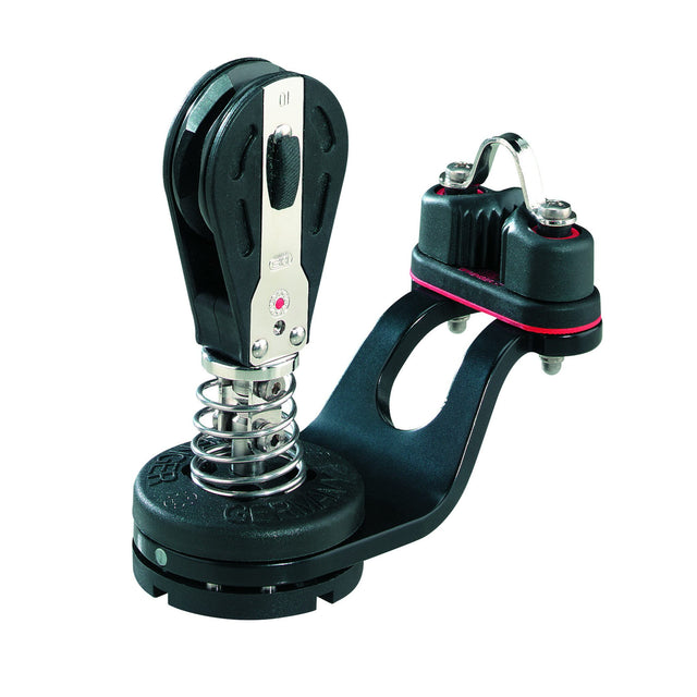 Flexible Kugellager-Basis mit kurzem Ausleger und montiertem Ratschblock für maximal 10 mm Tauwerk, wahlweise um 180°, 210° oder 360° drehbar. Die Federfixierung verhindert ein Übergreifen der Feder auf den Block. Integration von vier Wasserabläufen in die Grundplatte. Definiert ratschend mit einstellbarem Druckpunkt - der Anwender bestimmt, ob die Basis frei wirbelt oder wie stark gebremst wird. zwei Reihen Delrin-Kugeln sorgen für leichtes Drehen und freien, ungehinderten Lauf - auch unter Belastung. Die montierte Camlan®- Schotklemme ist für Schoten von 8-13 mm Durchmesser geeignet und kann wahlweise auf oder unter dem Ausleger montiert werden. Durch den weiten und tiefen Ausschnitt kann die Schot ohne Schamfilen direkt in die Camlan® Schotklemme laufen. Optimal gewinkelter Auslegearm, hergestellt aus stabilem Aluminium, eloxiert.