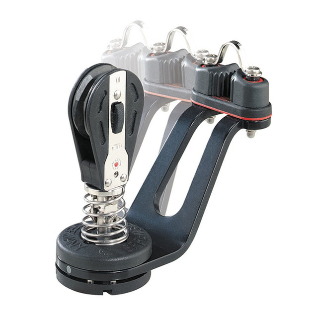 Flexible Kugellager-Basis mit hohem Ausleger und montiertem Ratschblock für maximal 13 mm Tauwerk, wahlweise um 180°, 210° oder 360° drehbar. Die Federfixierung verhindert ein Übergreifen der Feder auf den Block. Integration von vier Wasserabläufen in die Grundplatte. Definiert ratschend mit einstellbarem Druckpunkt - der Anwender bestimmt, ob die Basis frei wirbelt oder wie stark gebremst wird. zwei Reihen Delrin-Kugeln sorgen für leichtes Drehen und freien, ungehinderten Lauf - auch unter Belastung. Die montierte Camlan®- Schotklemme ist für Schoten von 8-13 mm Durchmesser geeignet und kann wahlweise auf oder unter dem Ausleger montiert werden. Durch den weiten und tiefen Ausschnitt kann die Schot ohne Schamfilen direkt in die Camlan® Schotklemme laufen. Optimal gewinkelter Auslegearm, hergestellt aus stabilem Aluminium, eloxiert.