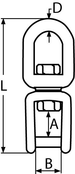 Wirbelschäkel Auge-Gabel Edelstahl A4 16 mm, schwenkbarer Schäkel, hohe Traglast 1500 Kg