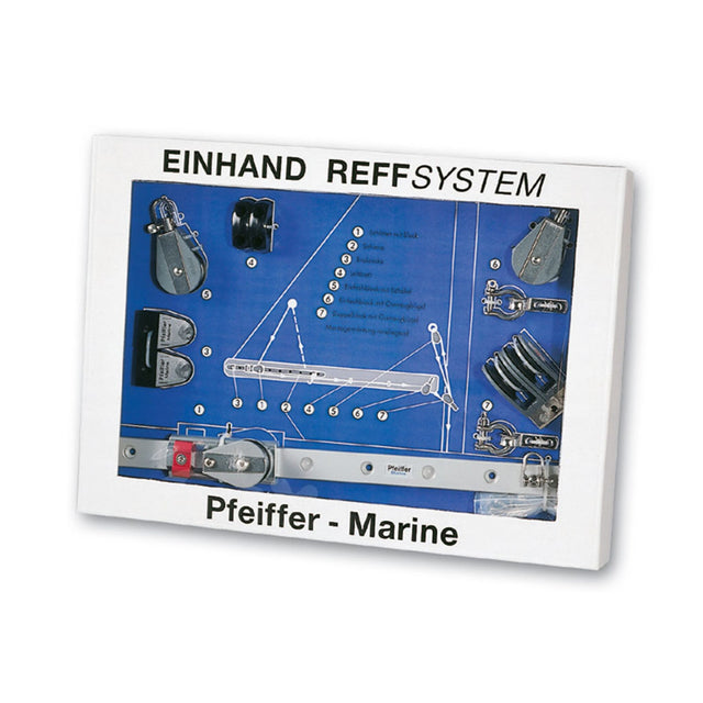 Wirksam funktionierendes und mit einfachsten Bord- mitteln zu montierendes Ein-Leinen-Reffsystem für Schiffe bis etwa 34 Fuß, ermöglicht das Reffen des Großsegels aus dem Cockpit. Das komplette System wird in einer montagefertigen Einheit inkl. Montage- anleitung für ein Reff geliefert. Sollte ein weiteres Reff benötigt werden, so ist ein weiteres System auf der gegenüberliegenden Seite des Großbaumes zu montieren. Die Umlenkung über das Kajütdach zum Cockpit muss schiffsindividuell vorgenommen werden.