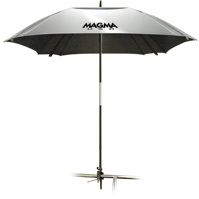 MAGMA Sonnenschirm Cockpitschirm mit UV-Schutz, Relinghalterung und windgeschütztem Design - blau oder silber - silber ist auf Lager und wird versandt, sobald es wieder verfügbar ist