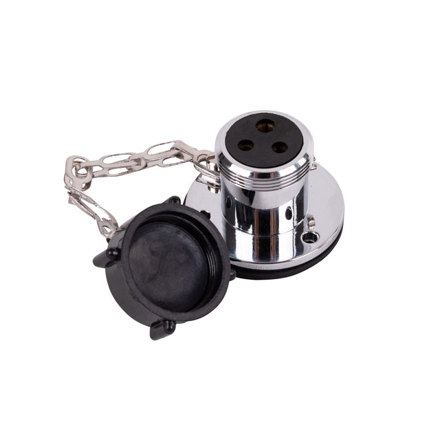 Die Ocean TEC Steckdose mit 3 Polen und einer maximalen Belastbarkeit von 3 Ampere ist wasserdicht und aus verchromten Messing.