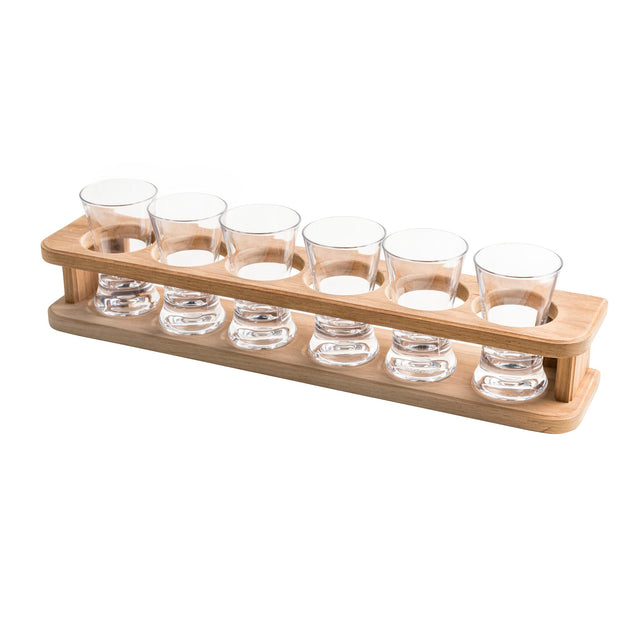Praktischer Schnapsgläserhalter von ARC aus Teakholz mit Platz für insgesamt 6 Schnapsgläser. Diese kann man im Glashalter befüllen und problemlos auch bei Wellengang im Hafen servieren, ohne den Inhalt dabei zu verschütten.