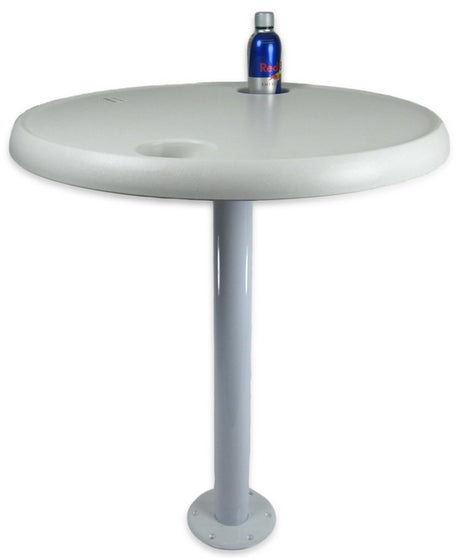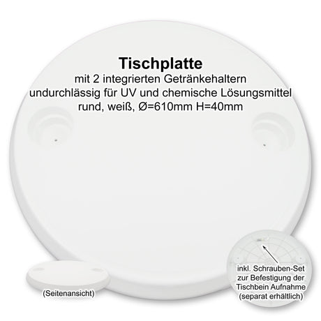 Tisch mit festem Tischbein aus ABS 60cm, weiß, mit Getränkehaltern, wetterfester Kunststofftisch