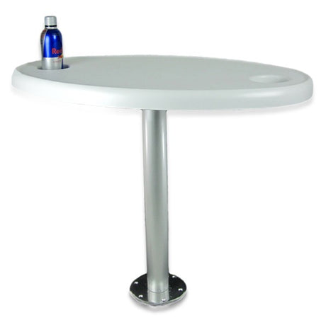 Ovaler Tisch mit festem Tischbein, Bootstisch mit Getränkehaltern, wetterfestes ABS und Aluminium