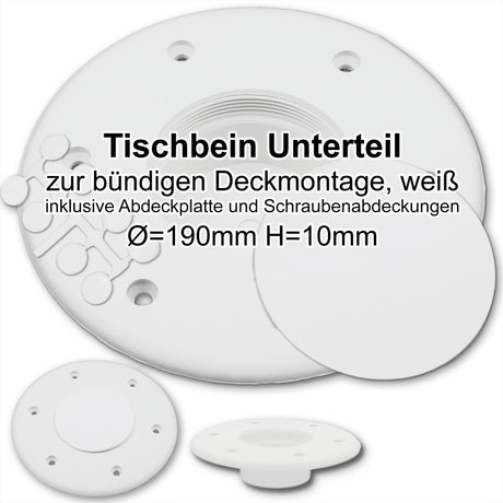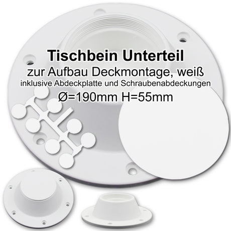 Tischträger Komplettset Aluminium 70 cm, Tischbein weiß lackiert, rostfrei im maritimen Bereich