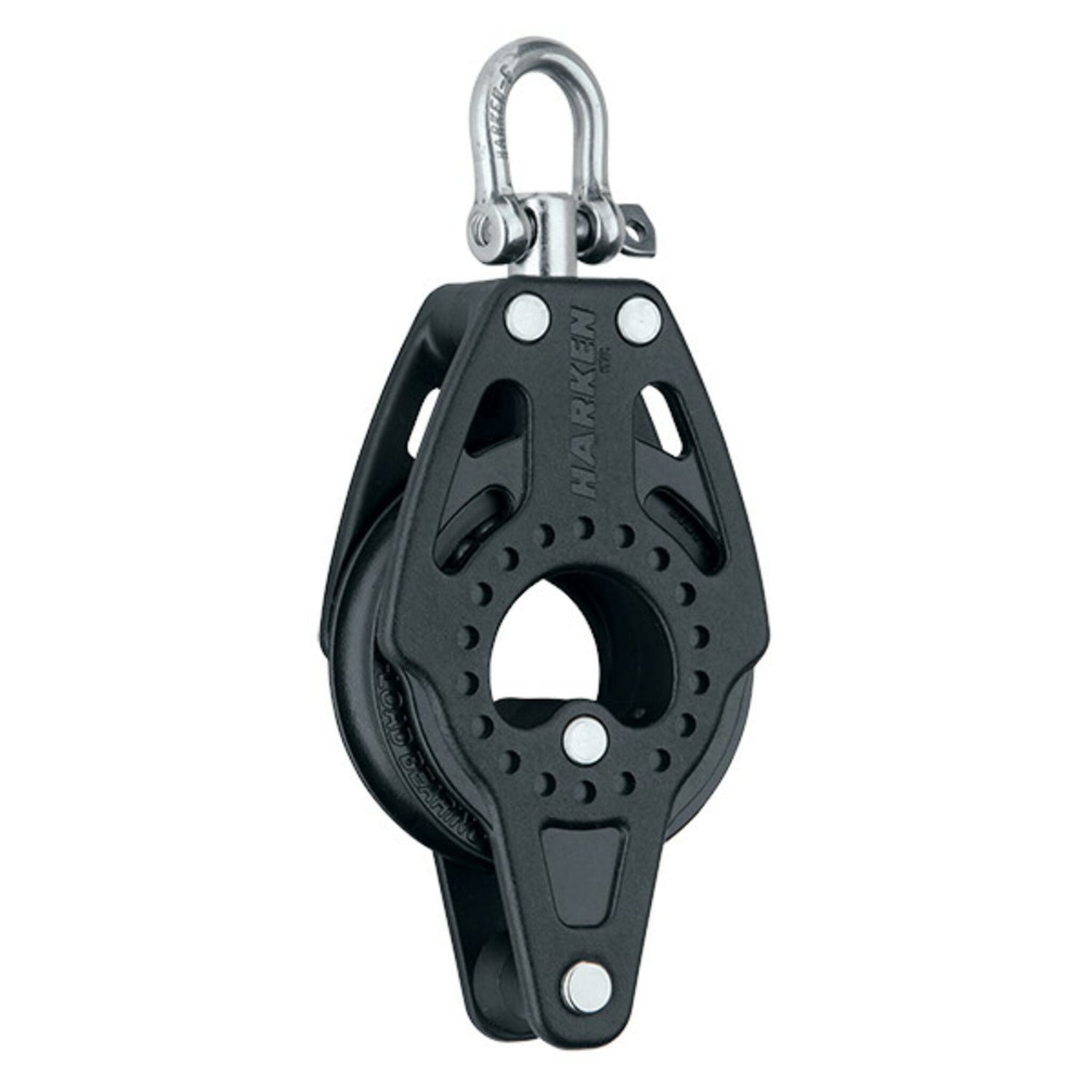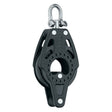 Der kräftige, leichtlaufende 57mm Carbo Block mit Hundsfott überzeugt durch geringes Gewicht, hohe Belastbarkeit und Zuverlässigkeit. Wangen und Scheibe sind aus hochfestem, leichtem Carbo Komposite gefertigt. Frei laufende Delrin Kugellager sorgen für leichten Lauf, auch unter hoher Belastung. Runde Lagerschalen leiten die Kräfte gleichmäßig ab und erhöhen die Belastbarkeit. Der frei drehende Pin ist in zwei Stellungen arretierbar. Der hoch belastbare, geschmiedete Schäkel garantiert sicheres Anschlagen. Perfekt zum präzisen Trimmen von Schoten auf Jollen und performance orientierten Sportbooten, sowie für Kontollleinen, auch auf großen Yachten. Der Carbo Block mit Hundsfott eignet sich für 2:1 und 3:1 Übersetzungen.