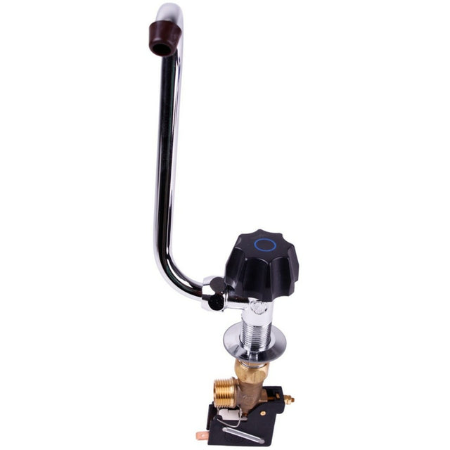 Automatik-Wasserhahn für Pumpen ohne Druckschalter (6-24 Vnbsp; Mit integriertem Schalter, aus verchromtem Messing. Der Auslauf ist vertikal schwenkbar. Inklusive kombiniertem 10/13 mm-Schlauchanschluss.