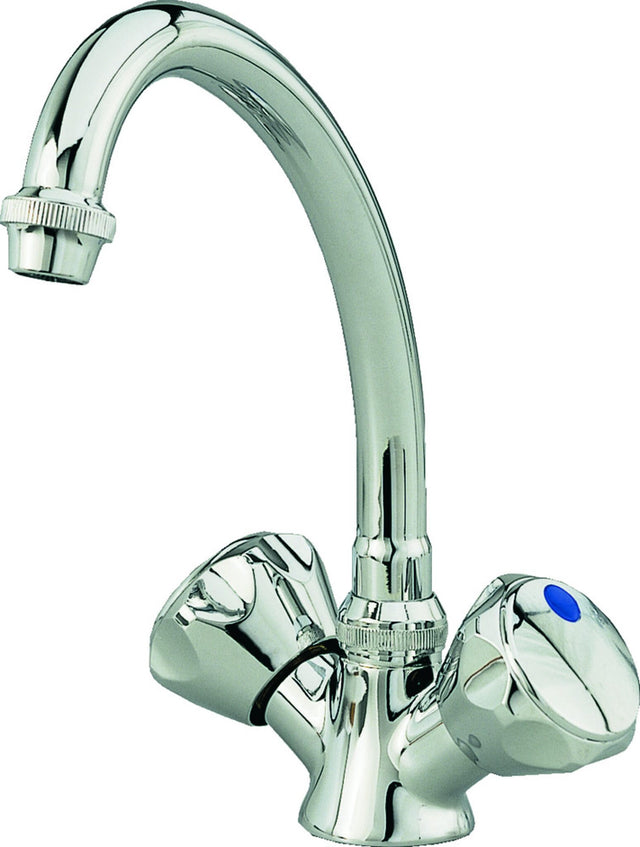 Plastimo Wasserhahn Mischarmatur Messing verchromt, Schwenkarmartur, 360° drehbar mit 10/13 mm Schlauchanschluss