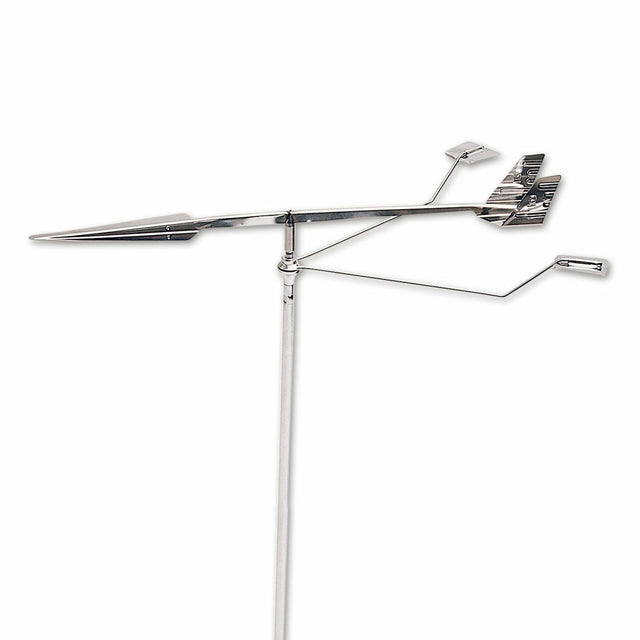 Der Windrichtungsanzeiger ist aus rostfreiem A4-Stahl gefertigt. Um die Windrichtung auch bei Nacht leicht erkennen zu können, ist eine reflektierende Folie aufgebracht. Der Pfeil ist kugelgelagert.
