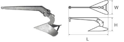 Plastimo anchor galvanized steel 20kg, plate anchor, instant hold