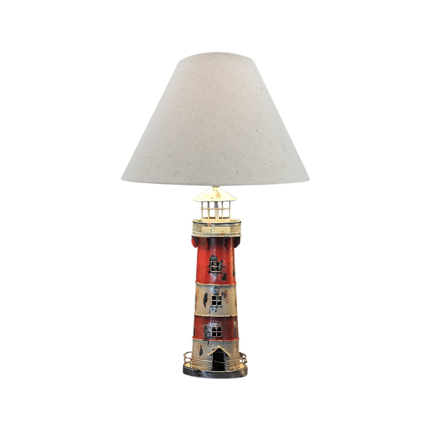Lighthouse lamp made of metal, table lamp, including maritime lampshade