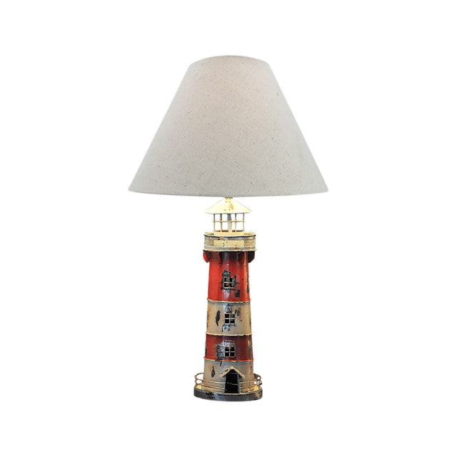 This lighthouse lamp is made of metal, lampshade included, and adds a maritime touch to any space.