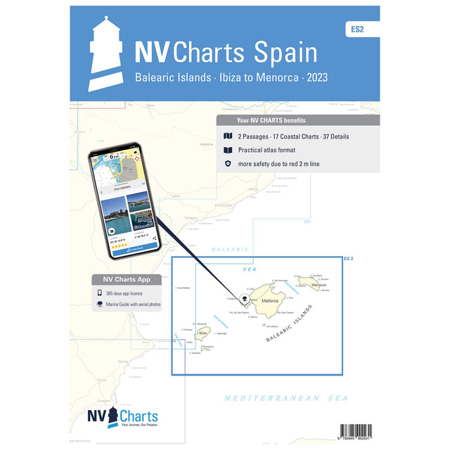 The ideal maps for your next Balearic Islands cruise: the new NV Atlas Spain - Balearic Islands - Ibiza to Menorca - ES. This comprehensive yet compact NV Atlas offers nautical charts in various scales, as well as all harbor plans and details for approaches and passages.