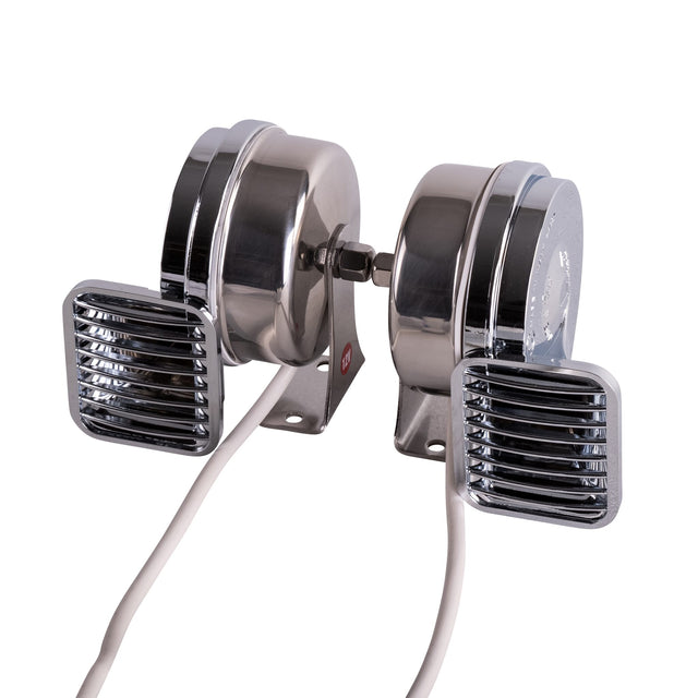 VETUS signal horn double horn 110 decibels chrome-plated brass, ship horn, powerful sound
