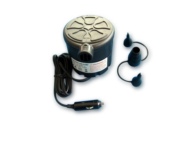 Die handliche elektrische Luftpumpe verfügt über eine Leistung, die zum Aufblasen von Luftmatratzen und kleinen Schlauchbooten ausreicht.