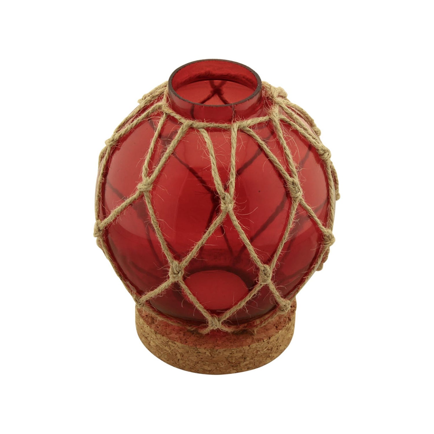 Fischerkugel Teelicht maritime Stimmung mit Korkunterlage, Dekoleuchte - blau oder rot - rot ist auf Lager und wird versandt, sobald es wieder verfügbar ist