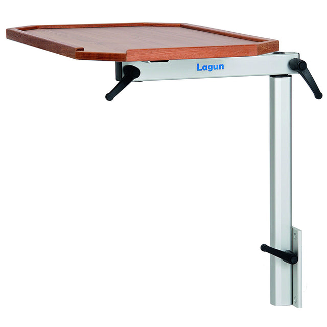 Der LAGUN Bootstisch RIMINI besteht aus einer kunststoffbeschichteten Platte in Teakimitation. Das mitgelieferte Untergestell aus salzwasserfestem Aluminium wird seitlich an der Längsducht montiert. So sitzt der Cockpit-Tisch fest, ohne dass Tischbeine stören. In der Höhe ist der Bootstisch RIMINI stufenlos verstellbar und um 360º schwenkbar. Der Tisch mit massivem Teakholz-Süll ist kunststoffbeschichtet, schnittfest und hitzebeständig und bietet somit Arbeitsplattenqualität. Höhe zusammengeklappt: 13 cm. Einfache Montage. Der Artikel besteht aus Tischplatte und Gestell.