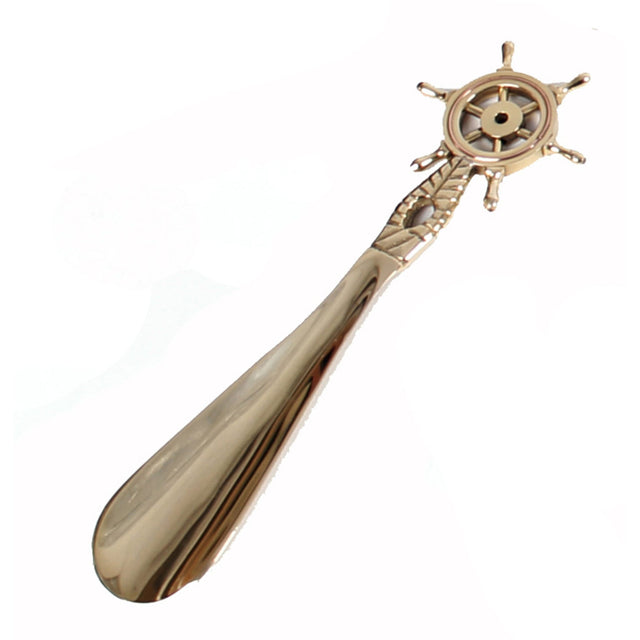 Schuhlöffel Messing maritim mit Steuerrad, Schuhanzieher, dekorativer Kupferring 26 cm Länge