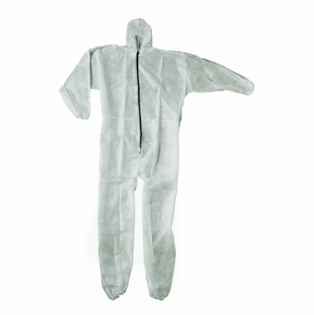 Der Einweg-Overall dient als Schutzanzug, um sich bei Maler- oder auch Gartenarbeiten vor Staub, Schmutz und Spritzern zu schützen. Dieser Einteiler ist waschbar und sogar atmungsaktiv, sodass ein hoher Tragekomfort gewährleistet wird und der Anzug mehrmals getragen werden kann. Mit Kapuze, Reißverschluss sowie Arm-, Bein- und Taillengummi. Aus 100 % Polypropylen gefertigt.