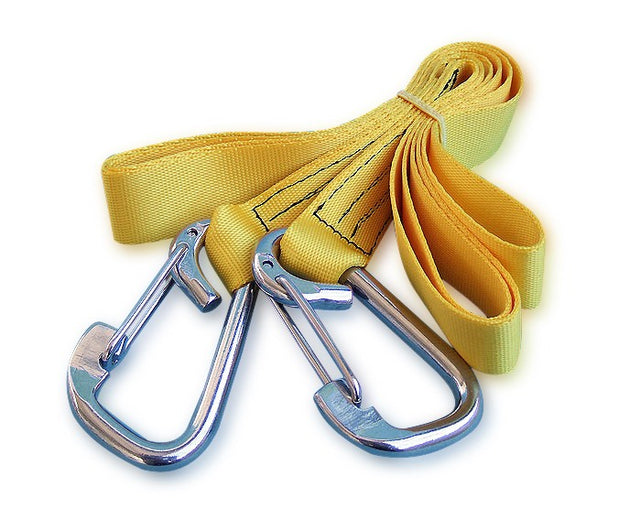 Versehen mit zwei Edelstahl-Karabinerhaken.